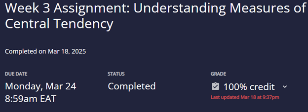 MATH225N Week 3 Assignment Understanding Measures of Central Tendency (Solved)