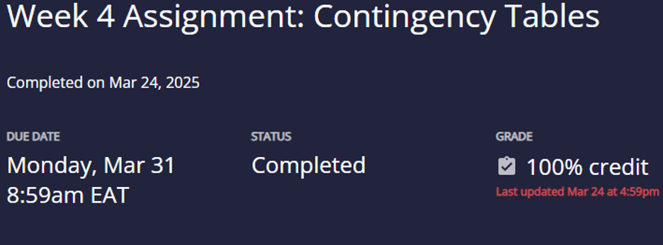 MATH225N Week 4: Contingency Tables {SOLVED}