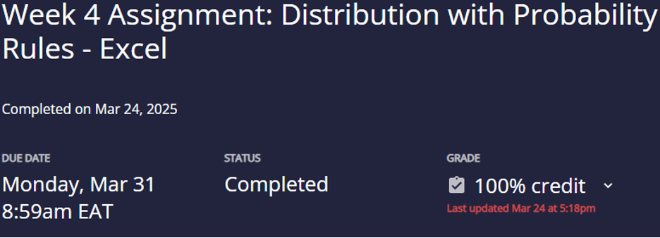 MATH225N Week 4: Distribution with Probability Rules – Excel
