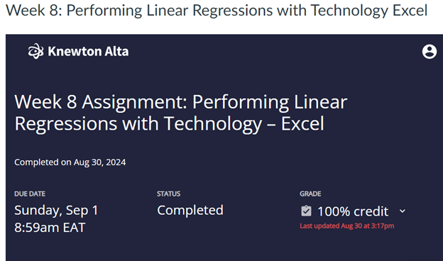 MATH225N Week 8 Performing Linear Regressions with Technology Excel