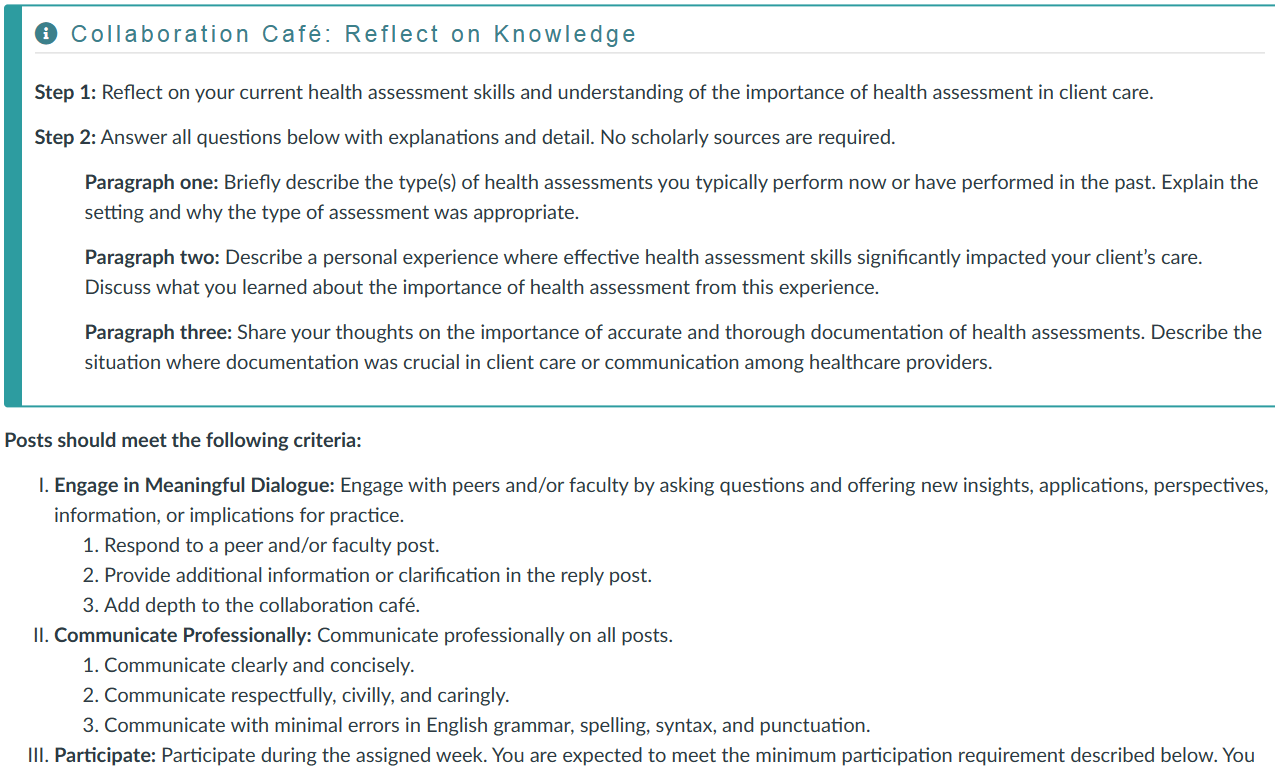 Paragraph two: Describe a personal experience where effective health assessment skills significantly impacted your client’s care. Discuss what you learned about the importance of health assessment from this experience.
