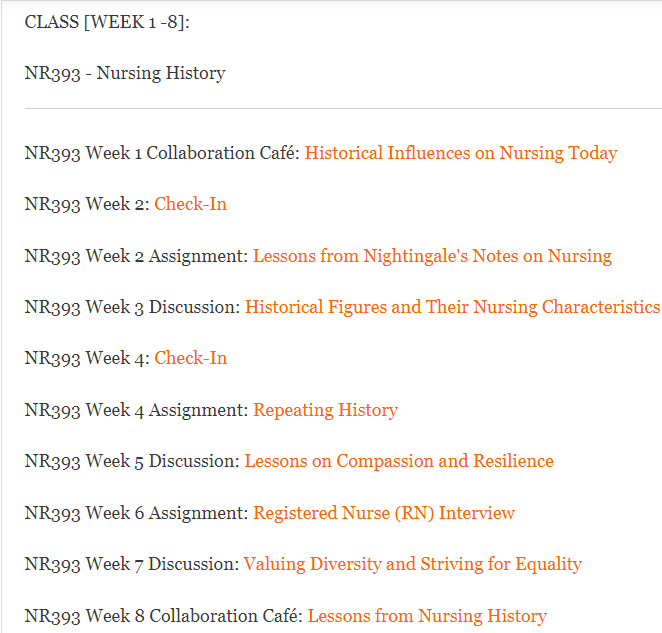 NR393 Week 8 Collaboration Café: Lessons from Nursing History