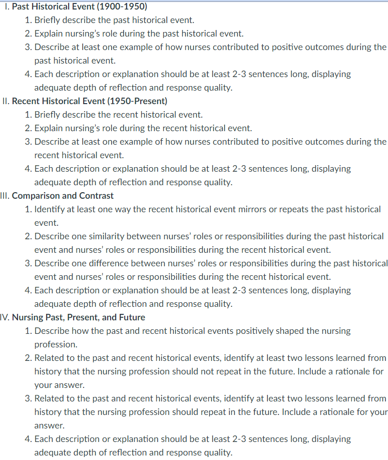 - Describe at least one example of how nurses contributed to positive outcomes during the past historical event.