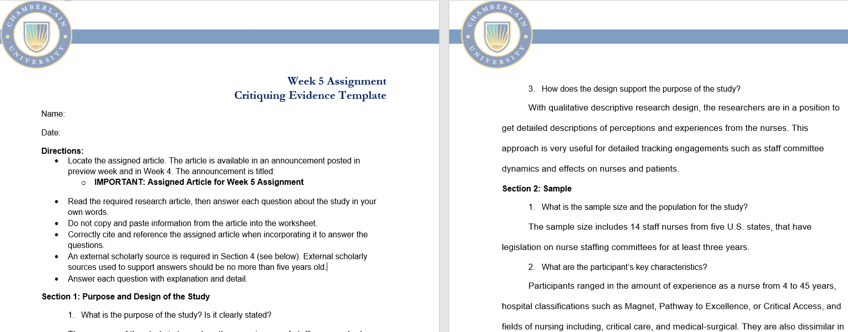 - Correctly cite and reference the assigned article when incorporating it to answer questions on the Critiquing Evidence worksheet template.