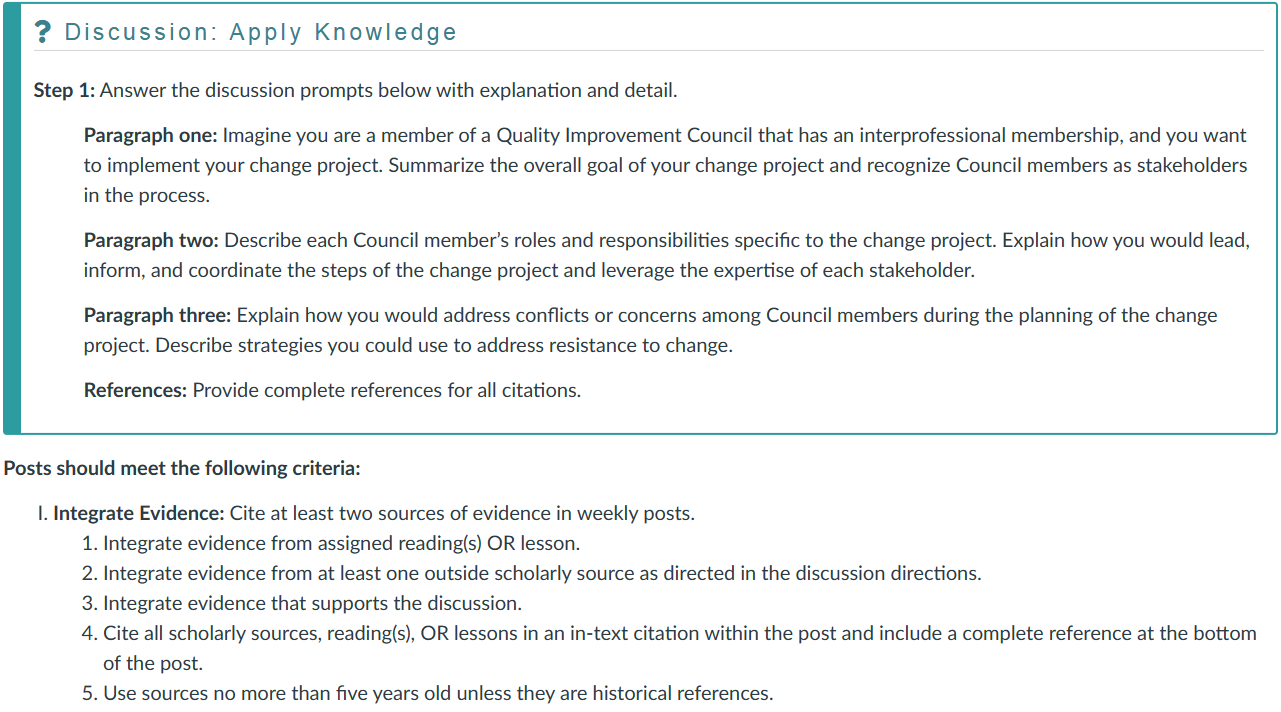 Paragraph one: Imagine you are a member of a Quality Improvement Council that has an interprofessional membership, and you want to implement your change project. Summarize the overall goal of your change project and recognize Council members as stakeholders in the process.