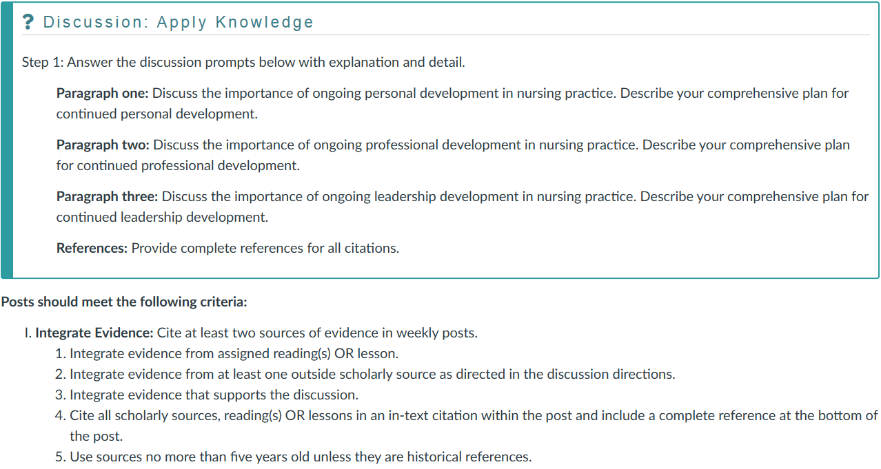 NR451 Week 7 Discussion: Personal, Professional, and Leadership Development