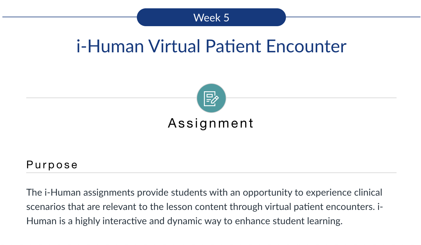 NR509 Week 5: i-Human Virtual Patient Encounter