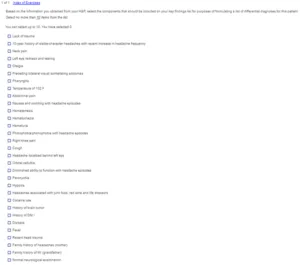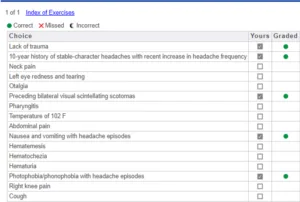 Ask relevant problem-focused questions to create an accurate initial differential diagnosis list. Various questions may yield the same information. Examples of high-yield questions for this case include: • Performed X Missed |