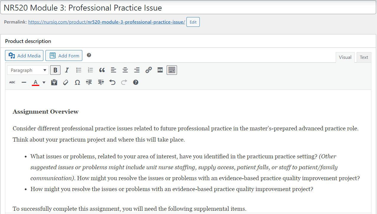 - What issues or problems, related to your area of interest, have you identified in the practicum practice setting? (Other suggested issues or problems might include unit nurse staffing, supply access, patient falls, or staff to patient/family communication). How might you resolve the issues or problems with an evidence-based practice quality improvement project?