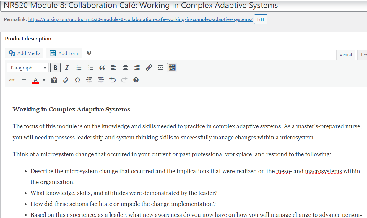 Be the first to review “NR520 Module 8 Collaboration Café: Working in Complex Adaptive Systems”