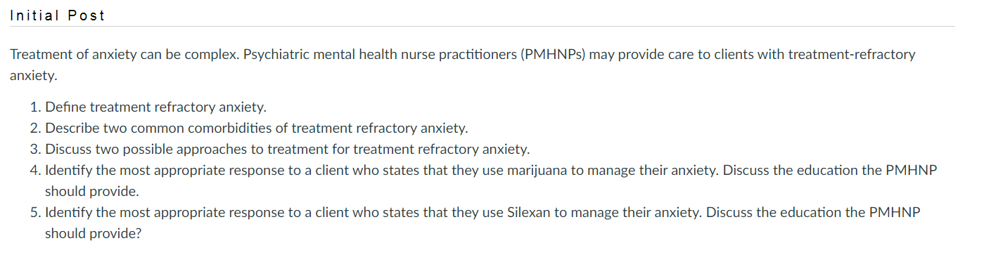 - Discuss two possible approaches to treatment for treatment refractory anxiety.