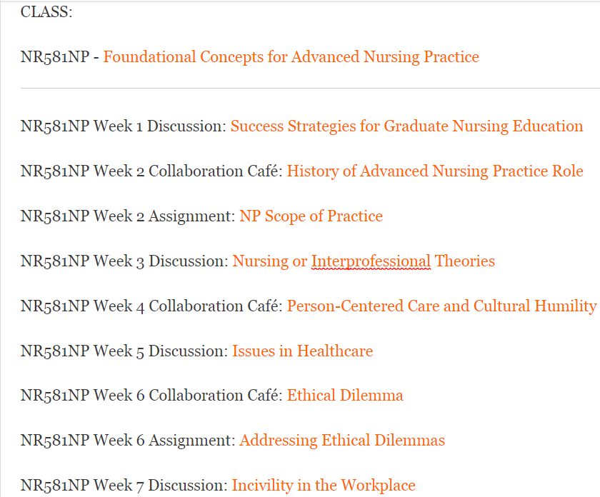 NR581NP Week 1 Discussion: Success Strategies for Graduate Nursing Education