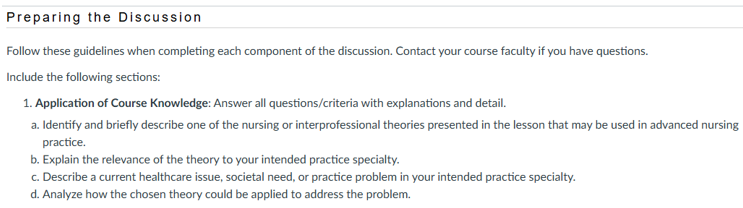 Follow these guidelines when completing each component of the discussion. Contact your course faculty if you have questions.