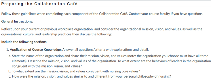 Follow these guidelines when completing each component of the Collaboration Café. Contact your course faculty if you have questions.