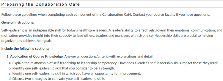 Follow these guidelines when completing each component of the Collaboration Café. Contact your course faculty if you have questions.