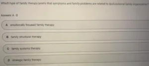 Which type of family therapy posits that symptoms and family problems are related to dysfunctional family organization?
