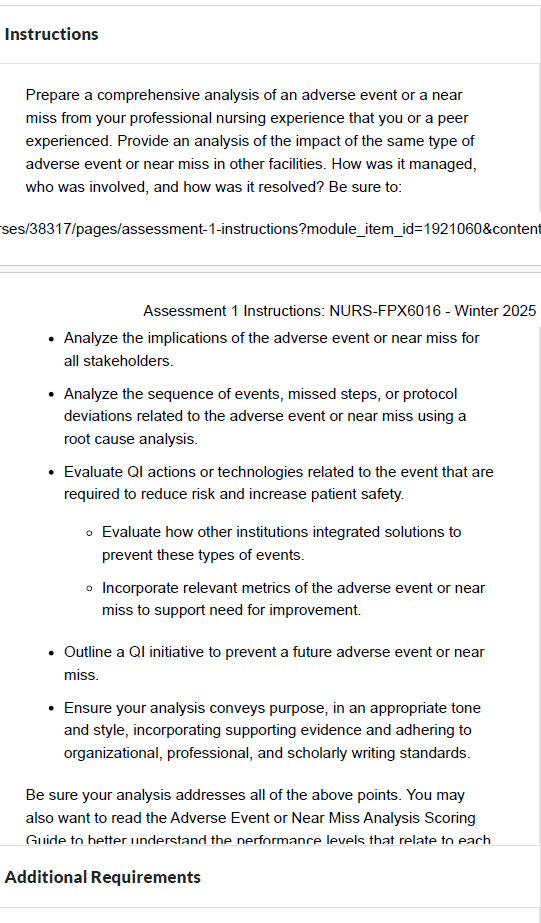 NURS-FPX6016 Assessment 1: Adverse Event or Near-Miss Analysis
