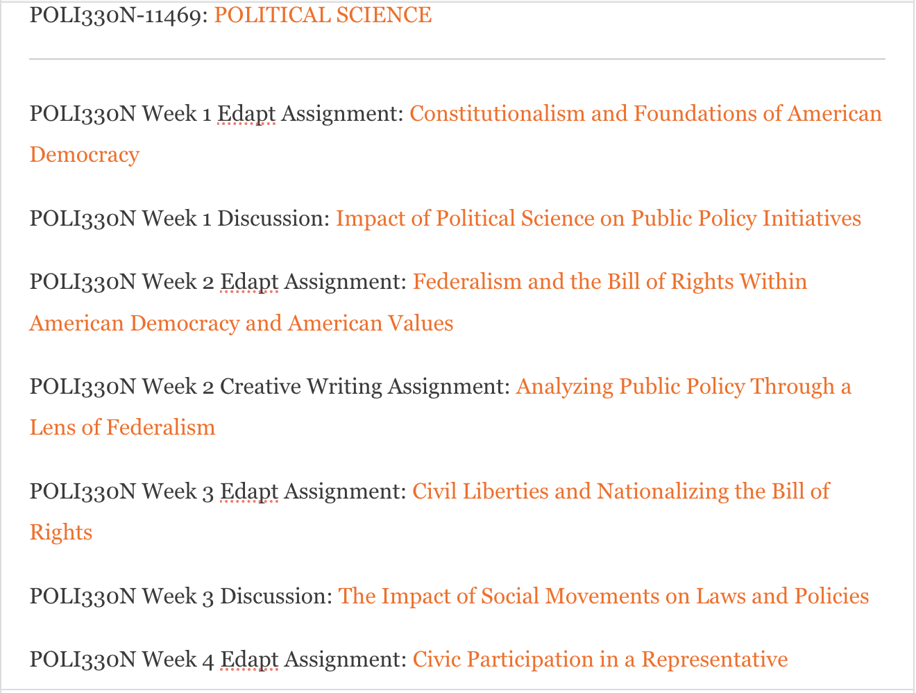 POLI330N Week 1 Edapt Assignment: Constitutionalism and Foundations of American Democracy