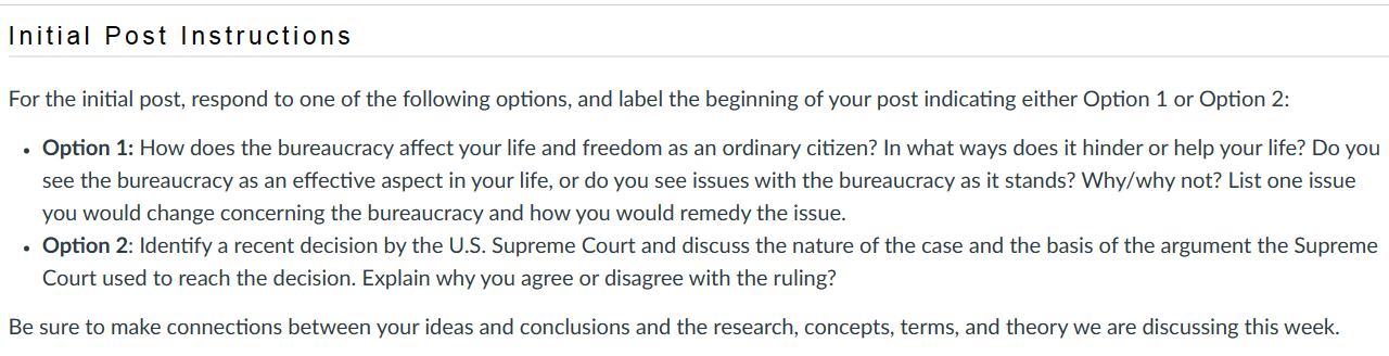 For the initial post, respond to one of the following options, and label the beginning of your post indicating either Option 1 or Option 2: